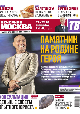 Еженедельный выпуск «Вечерней Москвы» — это значимые события недели, афиша города, новости из сферы отдыха и развлечений, телепрограмма с анонсами и комментариями, авторские колонки журналистов и авторитетные мнения экспертов, детская страничка, специальная рубрика «Золушка», интересные репортажи о необычных судьбах московских жителей, постоянные конкурсы и викторины.